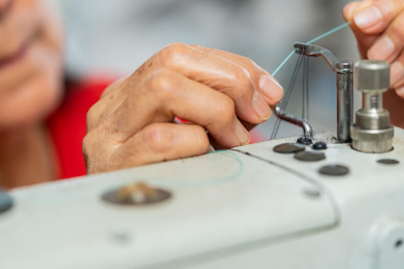 - Плохое качество строчки: пропуски стежков, петляние, обрыв нити из-за загрязнения челнока или неправильного трения.